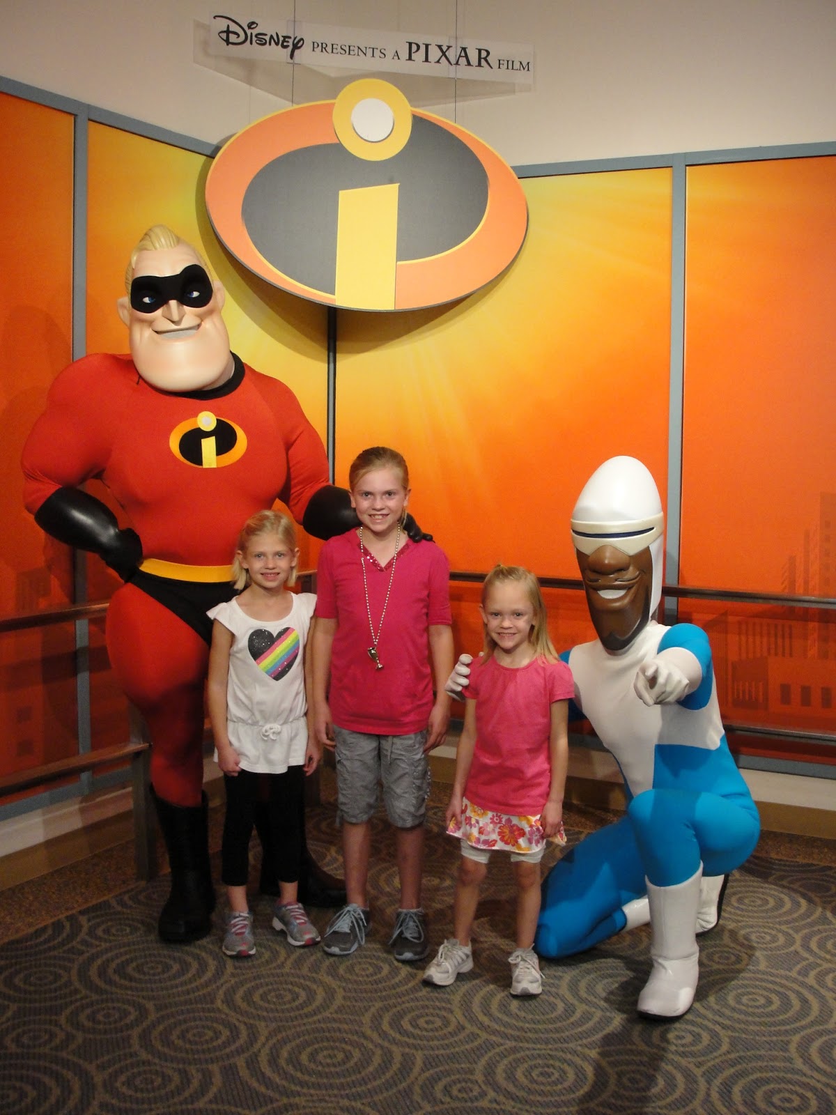 The girls weren't all that impressed to meet The Incredibles since they hadn't seen the movie to know who they were.